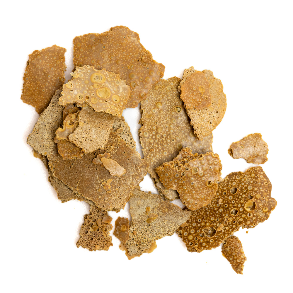 Claire, bulleuse, ultra-résineuse, cette pépite ramollit direct au contact des doigts et colle comme il faut. Odeur à l’ancienne, fumée blanche qui gratte et goût caramélisé profond. C’est du rosin rare, capricieux à manier, mais redoutable une fois lancé.
